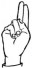 На ћирилици написано КОСТАДИН ШКОДРИЋ састоји се из 15 слова [?]. Исписано ћириличном једноручном азбуком за глувонеме:
